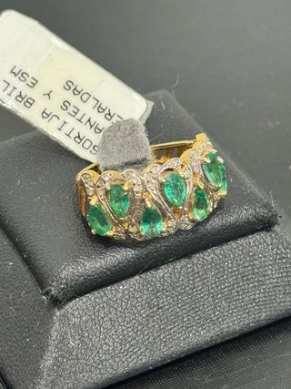 Elegante sortija de oro de 18 quilates, adornada con diamantes y esmeraldas. - Diseño con múltiples gemas. - Acabado brillante. PERFECTO PARA SORPRENDER EN ESTAS NAVIDADES A UN PRECIO INMEJORABLE