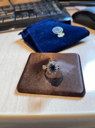 Anillo Lady Di Zafiro y Diamantes Antiguo