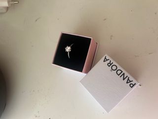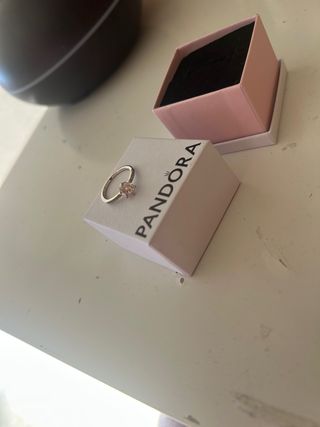 Elegante anillo de la marca Pandora. - Diseño con circonitas. - Tono plateado y diamante con corona en el centro la talla no me la sé muy bien pero pone ale 54