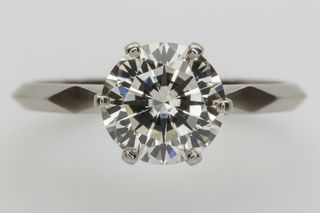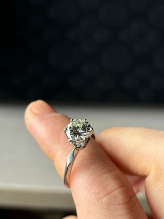 Vendo anillo solitario de diamante natural en montura de platino. La pieza incluye dictamen gemológico oficial del Instituto Gemológico Español (IGE) donde se certifican todas sus características. Venta y entrega en Comunidad de Madrid. Características del diamante (dictamen IGE): • Peso: 1,63 ct • Talla y forma: brillante redondo • Medidas: 7,69 × 7,75 × 4,42 mm • Color: K • Pureza: SI1(eye clean) • Calidad de talla: media • Fluorescencia: ligera, azulada. Características del anillo: • Montura de platino • Peso total de la joya: 5,36 g