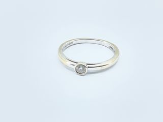 Elegante anillo de oro blanco de 18 quilates con un diamante central. *Peso: 2,32 gr.* *Precio no negociable* - Acabado Brillante. - Diseño clásico y atemporal.