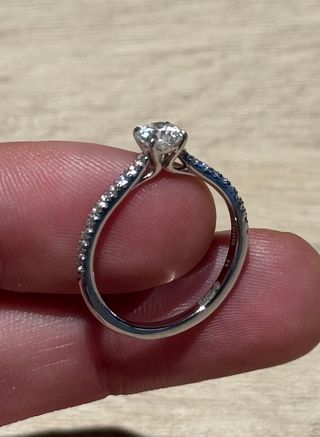 Elegante anillo de compromiso con un diseño delicado. Desconozco los detalles al haber sido un regalo. Origen reino unido . Talla para mano pequeña
