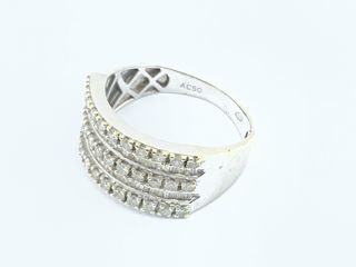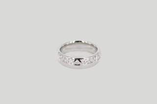 Elegante anillo con un diseño intrincado y detalles brillantes. - Elaborado en plata. - Adornado con pequeños diamantes.