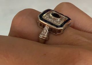 Anillo de compromiso Suarez Colección especial Romeo y Julieta Zafiro, Oro, Diamantes Justificante de Venta incluido Sin estrenar, edición limitada 2025 Precio de anillos similares actuales 1.600€, actualmente es una edición agotada s Incluye cajas, bolsas originales y el justificante de venta 2025 Talla 13 (predeterminada de Suarez antes de ajustar) Solo venta en persona Anillo de pedida Anillo de boda Anillo de Zafiro Anillo de Diamante