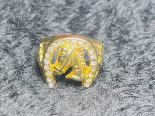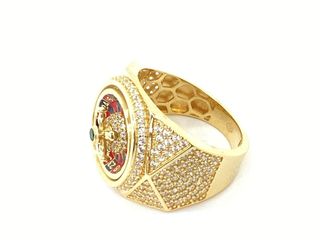 Anillo laminado en oro de 24k con sello de contraste 999 como garantía de la calidad del chapado en oro que tiene. -El metal interno es titanio cubierto por 60 micras de oro real. Espectacular color y brillo identico al oro real! Resistente al agua no pierde color. -Talla ajustable se abre y cierra a la medida deseada. -Magnifico anillo de oro sobre titanio con un diseño griego antiguo. Es un anillo sello de oro sobre titanio cuyo sello es un impresionante águila trabajado en punta de diamante por eso tiene un brillo especial. Joyería artesanal hecho a mano. - Laminado en oro de 24 quilates. -Nuevo a estrenar con cajita y etiqueta.