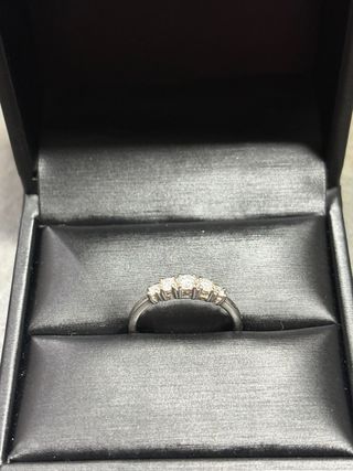 Cinquillo de Oro Blanco con 5 diamantes, comprado en Joyería ZAYRO. Talla 12, con factura y certificado de autenticidad. El valor del anillo son 600€.