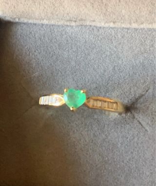 Anillo ajustable con esmeralda natural en corte corazón. Plata 925 chapada en oro 18k. Esmeralda natural. Estado nuevo, sin uso. Incluye certificado y caja. Talla ajustable. Envío bien protegido y rápido.