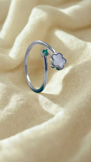 Anillo ajustable con un diseño delicado y elegante. esmeralda natural colombiana de la región de Chivor, Boyacá, Colombia. tamaño de la esmeralda 0.05ct y 2mm. - Elaborado en plata 925. - Cuenta con una esmeralda natural colombiana. - Detalle de flor en la parte superior.