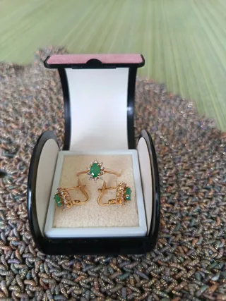 Juego Oro 18k,orla de esmeralda y circonitas