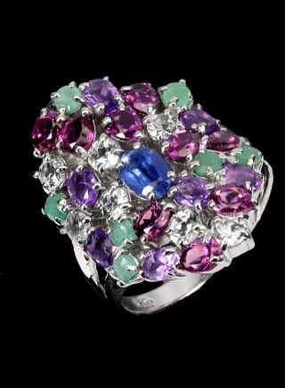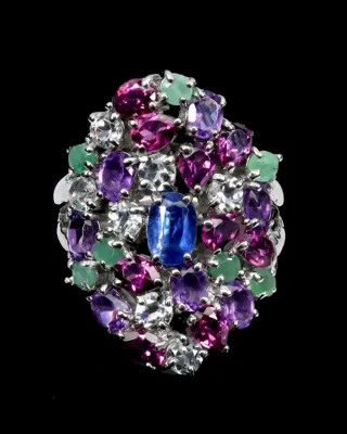Anillo Multigema - esmeralda cianita...- Plata 925