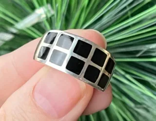 Elegante anillo de azabache y plata 925