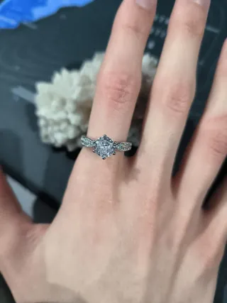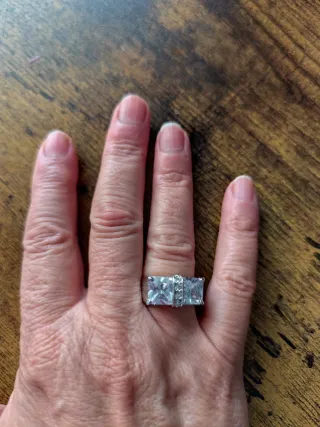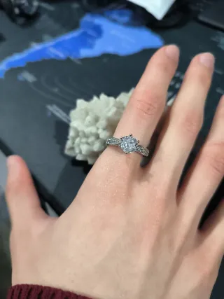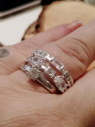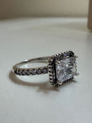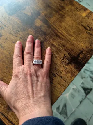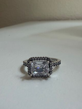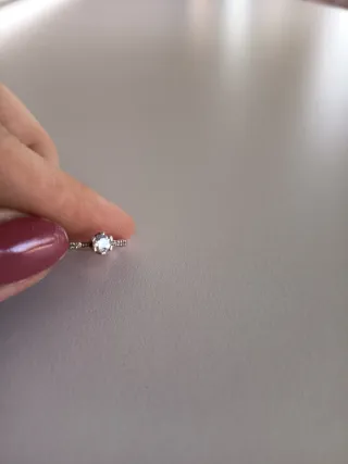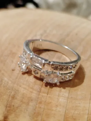 Elegante anillo con un diseño clásico y detalles brillantes. - Circonita central grande. - Banda adornada con pequeñas circonitas. -perfecto si tienes que pedirle la mano a tu pareja y tienes bajo presupuesto! Ya que es precioso -pequeño rasgado por debajo ya que tenia sello 925 y se comprobo que fuera plata de ley pero resulta ser baño. - per