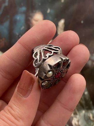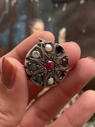 Precioso anillo tamaño grande plata y piedras naturales (le falta 2 piedritas y una buena limpieza) 🔴porfavor mirar las medidas en fotos y toda la descripcion antes de comprar y no accepto devolución ! Gracias 🙏