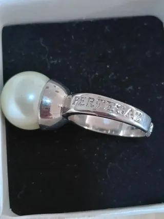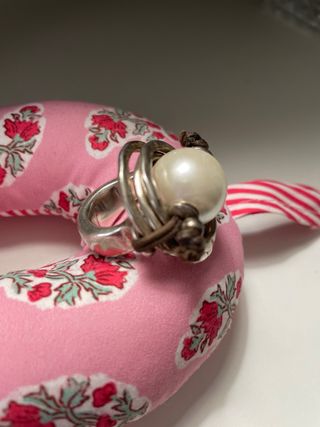 Elegante anillo de la marca Uno de 50 detalle perla grande central Modelo disponible en su web por 115€ No se muy bien la medida, pongo foto del interior medido con el metro - Estilo entrelazado.