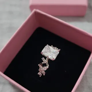Elegante anillo de plata 925 con un diseño delicado. - Piedra central grande tipo rectangular. - Detalle de pequeñas circonitas en forma de flor.