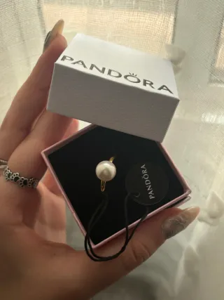 Anillo de Pandora de color dorado con diseño en forma de Perla grande de color Blanca en talla 56 con cajita de la marca incluida y envíos en 24-48h