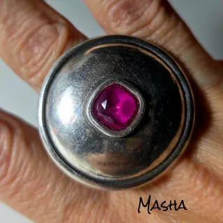 Anillo grande en zamak con baño de plata Mide 34 mm de diámetro y tiene un cristal tallado en centro de 8x8mm Ajustable desde la talla 12 a la 19 aprox. Hipoalergénico