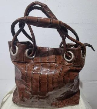 Bolso Grande Mujer Marrón Cocodrilo