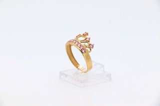 ANILLO GRANDE CORONA 15 CIRCONITAS ROSAS. Oro 18k.