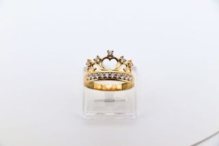 ANILLO GRANDE CORONA CIRCONITAS BLANCAS. Oro 18k.