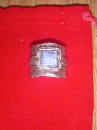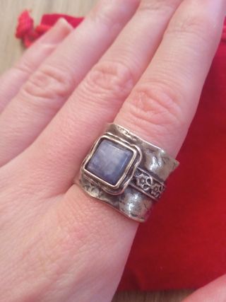 Anillo de plata de ley y piedra cianita natural. Estiló boho, étnico. Hecho en Israel. No he usado nunca - me queda grande. Anillo es muy ancho, creo que la talla vale para 12-14.