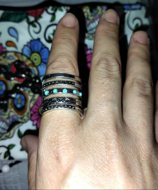 lote de 2 anillo plateado, uno turquesa talla 17 y otro negro talla 20 nuevos sin estrenar. estilo vintage de rodio