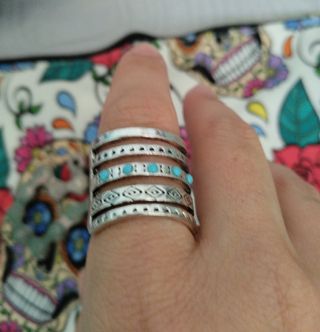 Anillo grande, vintage talla 11 color plateado y turquesa