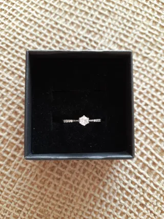 Anillo de plata la marca Time Road. Una circonita grande y 8 más pequeñas. Incluye la caja y la bolsa de regalo