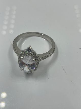 Elegante anillo con un diseño clásico y detalles brillantes. - Aro adornado con pequeñas circonitas. - Circonita central grande y luminosa. - Montura de plata.