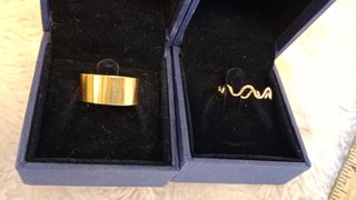 2Anillos .dorado cruz y brillo y el plata con mano