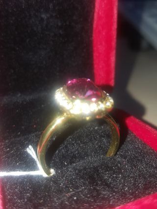 Sortija de metal con piedra grande grana rodeada de cristales. Para mujer. Vende particular-