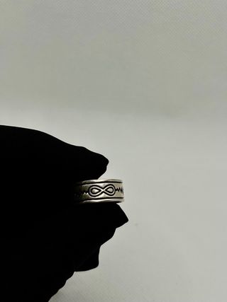 Anillo de plata con diseño de Infinito. Talla: 12 (16,5 mm de diámetro interior, 52 mm Circunferencia), 14 (17,2 mm DI, 54 mm C) y 15 (17,5 mm DI, 55 mm C). Sólo envío. Si buscas algo y no lo encuentras pregúntame✍️🏼