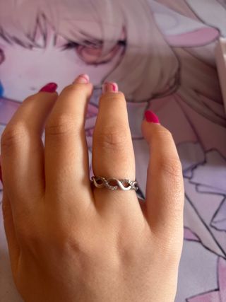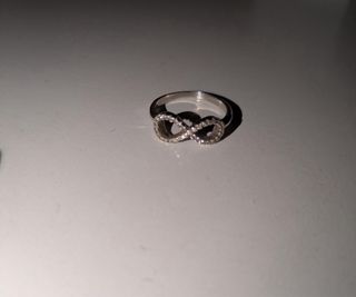 Anillo con diseño de infinito en plata de ley. - Detalles de pequeñas piedras incrustadas. - Estilo moderno y elegante. No envio. Entrego en mano en Humanes de Madrid.