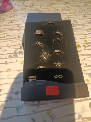 Conjunto de bisutería con varios accesorios. - Dos pulseras con símbolo de infinito. - Pendientes variados. - Anillos con diferentes diseños.
