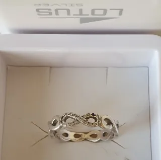 Elegante anillo alianza con diseño de infinito y circonitas.Talla 15, Una joya delicada y brillante.Muy buen estado en general,lo único que le faltan son 3 circonitas,ver Última fotografia esta ampliada, debido a ello su precio. Puesto es prácticamente inapreciable,se entrega en caja de joyería lotus. - Fabricado en plata primera ley S925. Comprado en joyería . - Adornado con circonitas. - Diseño de infinito entrelazado.Se puede ver y probar sin compromiso.