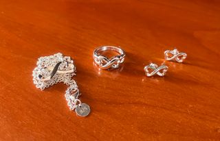 Conjunto de joyería con diseño de infinito. - Fabricado en plata 925. - Incluye collar, anillo y pendientes. - Nuevos, nunca usado. No viene con caja. -precio negociable. Envío rápido .