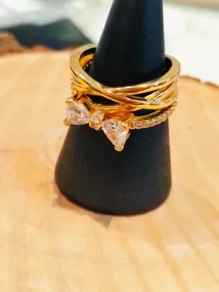 Anillo dorado con diseño de lazo. Es fino, ligero y muy cómodo para llevar a diario. Tiene un estilo delicado y minimalista que combina fácilmente con otros anillos o se puede llevar solo como pieza protagonista. Ideal para looks casuales o más arreglados. También es buena opción para regalo por su diseño sencillo y atemporal.