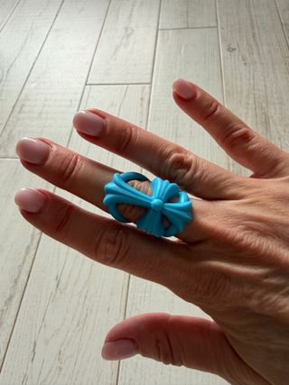 Anillo llamativo con un diseño de lazo. - Diseño de lazo. - Tono azul vibrante.