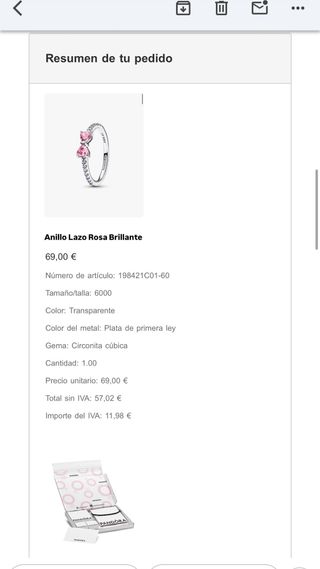 Anillo de la marca Pandora con un diseño elegante.Talla56,con su caja original+caja regalo rosa con lazo,no rebajoen tienda 69 euros+5euros la caja. - Color principal rojo - Presentado en su caja original con lazo negro.