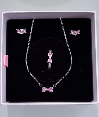 set gargantilla pendientes y anillo de plata 925 de lazo rosa