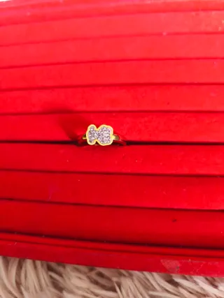 Elegante sortija con un diseño de lazo adornado con pequeñas circonitas brillantes. Un accesorio delicado y llamativo. Hay dos fotos moderna y actual a mitad de precio por cierre de negocio es una sortija preciosa - Tono dorado. - Detalles de circonitas.