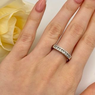 Alianza completa de oro blanco de 18kt con carril de diamantes talla brillante de 0,04ct cada uno con encaste en 4 grapas Talla original: 13 Peso: 6,56g Gema: 23 diamantes talla brillante de 0,03ct cada uno y 0,69ct en total. Calidad: I/SI