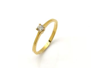 Elegante anillo con un diamante central. - Diseño moderno y delicado. - Banda del anillo en oro. - Piedra central brillante.