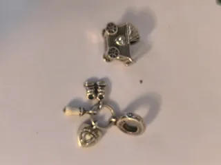 Conjunto de abalorios Pandora. Cada uno 14€ - Abalorio con forma de cochecito. - Abalorio con forma de corazón y zapatitos. - Abalorio con forma de anillo.