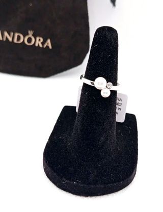 Anillo PANDORA Timeless, plata de ley con Perlas blancas y circonita, talla 16'9mm. Fino y elegante. SIN ESTRENAR, con etiqueta. Se entrega con caja y bolsita de terciopelo Pandora