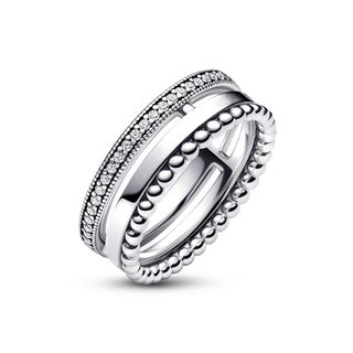 Elegante anillo de la colección signature de Pandora, Logo y Pavé en dos tonos, acabados en plata s925 y circonitas Talla 6, Circunferencia 52mm, Diámetro 16,5mm Precio España 99€