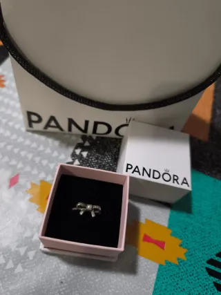 Anillo de Pandora en plata s925, con un diseño de lazo en color rosa, comprado en Andorra para un regalo que nunca se hizo, precio en España de 69€ Talla 7, circunferencia 54mm, diámetro 17,3mm