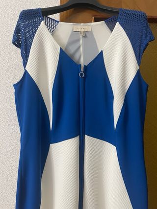 Vestido azul y blanco con cremallera