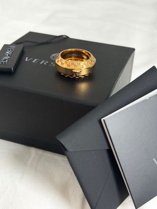 Anillo Versace para hombre, en color dorado. Es un anillo precioso y elegante. - Diseño con el logo de Medusa de Versace. Anillo de Versace Medusa El anillo está muy finamente tallado • Diámetro interior: Aproximadamente 20,1 mm • Circunferencia del anillo: Aproximadamente 63 mm #versace #versacering. #versaceanillo #versacebague #versacevintage #versaceaccessories #versacehomme #versacehombre #versacecouture