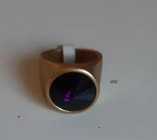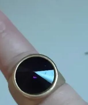Precioso anillo para hombre. Es de color dorado con un cristal negro - Diseño elegante y sobrio. - Cristal oscuro con destellos morados. - Anillo de estilo clásico.
